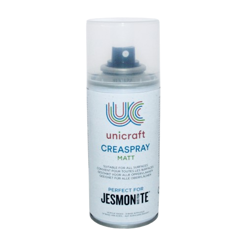 Jesmonite Creaspray mat lak, prozirni film koji ne žuti. Pogodno za zaštitu mnogih vrsta površina od prašine, masti, hrđe, kao što su drvo, staklo, kamen, metal, karton, papir i polistirenska pjena. Također se koristi sa akrilnim slikama, crtežima, planovima, fotografijama, dokumentima i papirom.